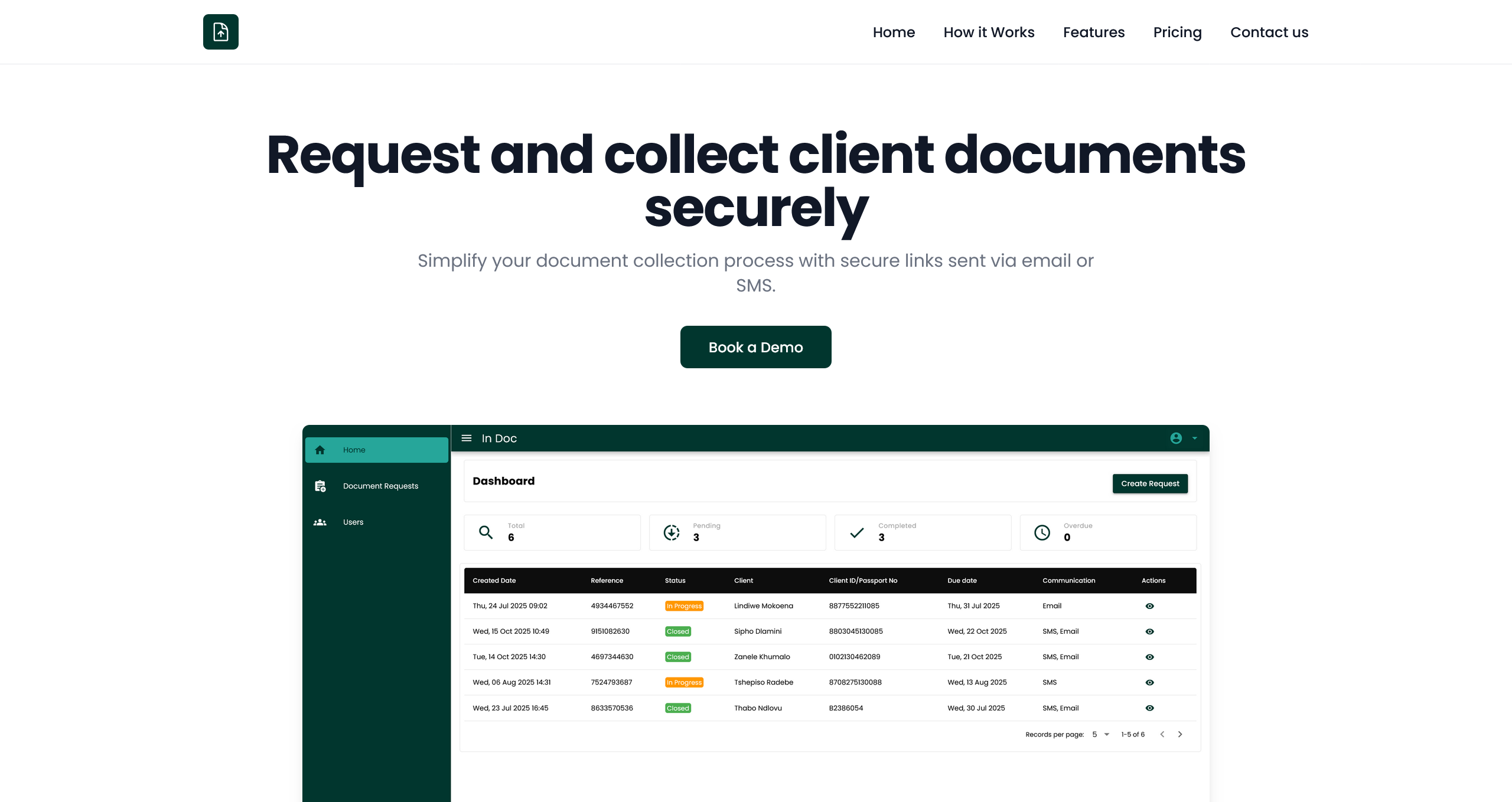 A document request and collection platform that allows organisations to securely request documents from clients in minutes.